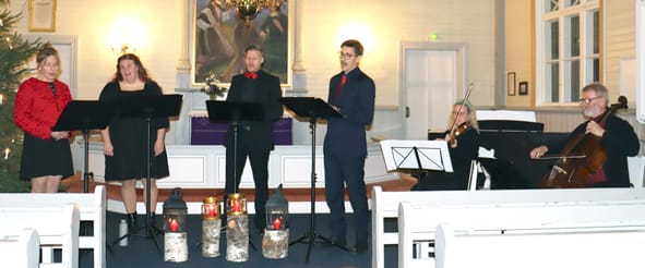 Donum Cantus -kvartetti Henna Jylkkä sopraano, Anni Kalliokoski altto, Timo Kinnunen tenori ja Antti-Kalle Ranua basso, Tiina Ylikoski viulu ja